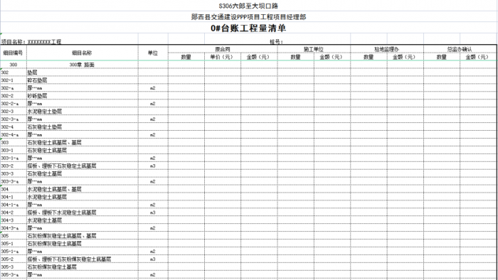 “0#”臺賬按單位、分部、分項工程劃分標(biāo)準(zhǔn)編制,可以將計量支付與質(zhì)量檢驗評定有機結(jié)合起來,這樣可以使質(zhì)檢、測量、實驗、計量等部門的內(nèi)業(yè)工作都在同一個規(guī)則下進行,提高了整個項目(合同段)內(nèi)業(yè)管理的效率。